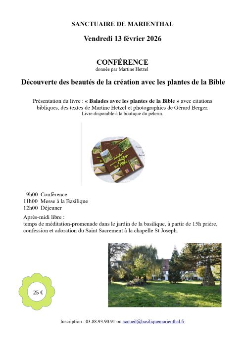 Martine Hetzel présentera son livre « Balades avec les plantes de la Bible », illustré par les magnifiques photographies de Gérard Berger. Cette rencontre sera ponctuée de citations bibliques et de textes méditatifs, offrant un regard à la fois spirituel, culturel et botanique.