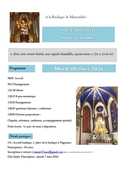 Participation : 18 euros Inscriptions à envoyer à jmarie67mass@gmail.com ou accueil@basiliquemarienthal.fr