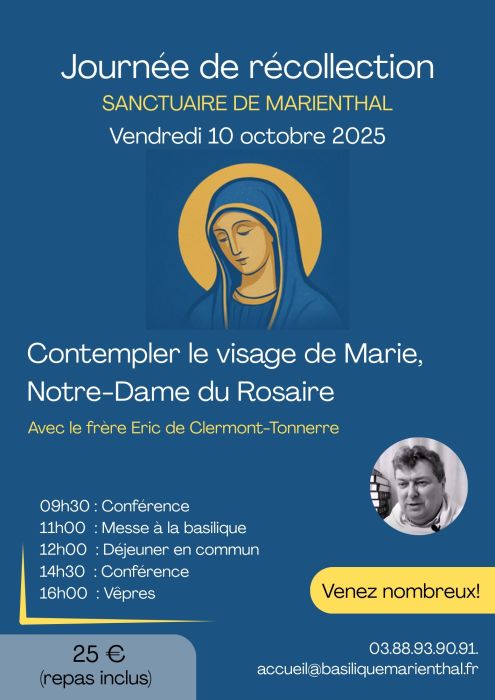 Cette récollection est une belle occasion de se mettre à l’écoute de la Parole de Dieu, de méditer le Rosaire et de contempler le visage de la Vierge Marie.