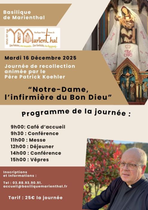Le Père Patrick Koehler animera une journée de récollection à Marienthal le mardi 16 décembre 2025, autour du thème : Notre-Dame, l'infirmière du Bon Dieu.