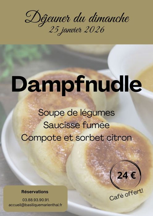 L'hôtellerie de la basilique vous propose un menu unique Dampfnudle avec :