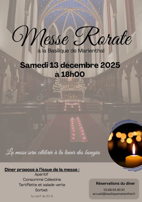 Une Messe Rorate est proposé le samedi 13 décembre 2025 à 18h à la Basilique de Marienthal.